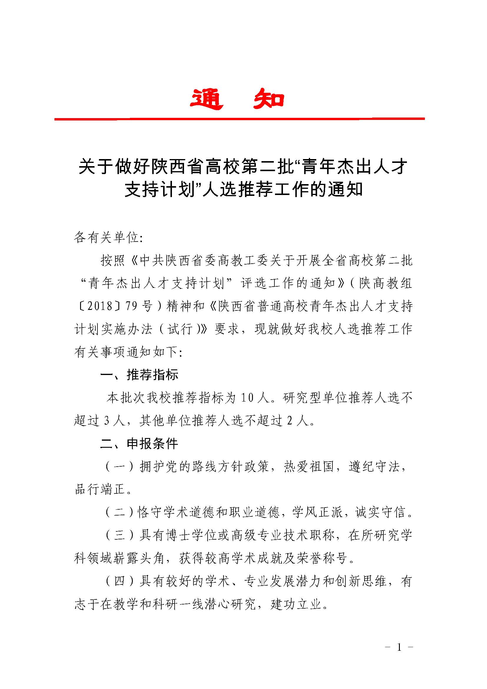 (转)关于做好陕西省高校第二批“青年杰出人才支持计划”人选推荐工作的通知
