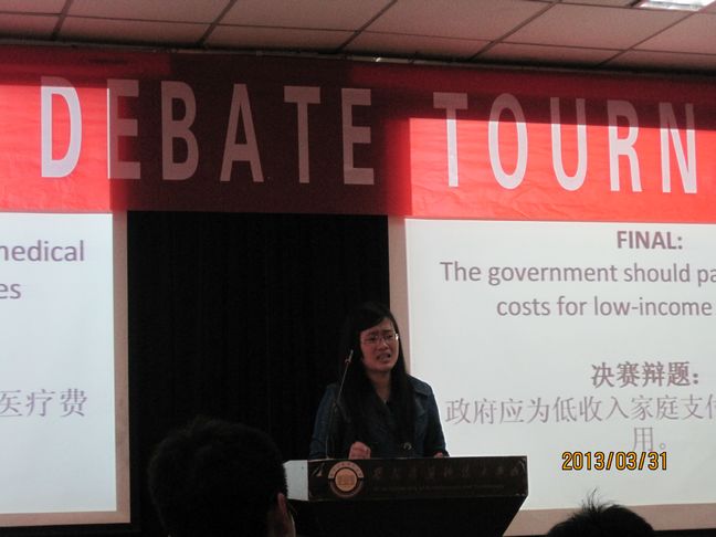 本次比赛是由国际辩论教育协会(简写IDEA)举办,在全球多个国家推广辩论赛。在中国,IDEA与外研社、北外合作多年,组织了全国性的比赛长达10年,在全国高校影响深远。本次比赛,我们做了充分准备,参赛选手在带队老师的指导下,在决赛中从语言、内容、演讲技巧等各个方面都表现出了很大的进步,反映了我校学子的风采和精神面貌,本次比赛不仅锻炼了学生的英语实际运用能力,也培养了大学生的和团队协作精神,同时也加强了和各高校之间的联系与学习。