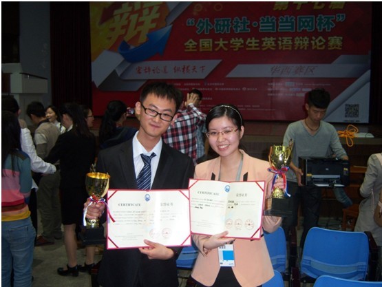 “外研社杯”全国大学生英语辩论赛创始于1997年,每年举办一届,是目前国内规模最大、水平最高的英语口语赛事。“外研社杯”全国大学生英语辩论赛由团中央学校部、全国学联、北京外国语大学主办,外语教学与研究出版社及中国教育电视台承办。本届大学生英语辩论赛(华西赛区)共有四川大学、四川外国语大学、重庆大学、西安交通大学、西北大学,西安外国语大学,西安电子科技大学等46所高校组队参赛。我校代表队是陕西省5所高校中唯一获得一等奖的参赛队伍,为学校争得了荣誉。
