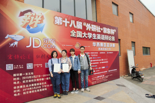 3月27日至3月29日,第十八届“外研社京东杯”全国大学生英语辩论赛华西赛区比赛在西南民族大学(航空港校区)举行。比赛中我系学子稳扎稳打,勇创佳绩,斩获华西赛区二等奖,顺利进军5月份在北京举行的外研社全国大学生英语辩论赛总决赛,我校获得赛事优秀组织奖。