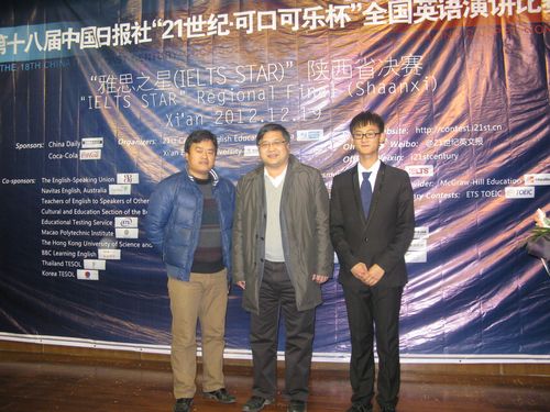 12月19日,由中国日报社与可口可乐公司联合主办,21世纪英语教育传媒集团承办的第十八届中国日报社“21世纪.可口可乐杯”全国英语演讲比赛陕西赛区决赛在西安欧亚学院图书馆学术报告厅举行。我系2011级英语专业学生张兆卿凭借其出色表现,获得陕西赛区决赛一等奖,杨晓峰老师也获得“优秀指导教师”称号。