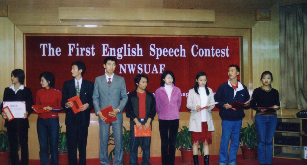 西北农林科技大学第一届大学生英语演讲比赛暨2002年“CCTV杯”全国英语演讲大赛选拔赛于2002年10月18日晚在北校区七号教学楼二层报告厅举。比赛由外语系承办。李靖常务副校长及有关职能处室、各院系负责人出席了比赛。