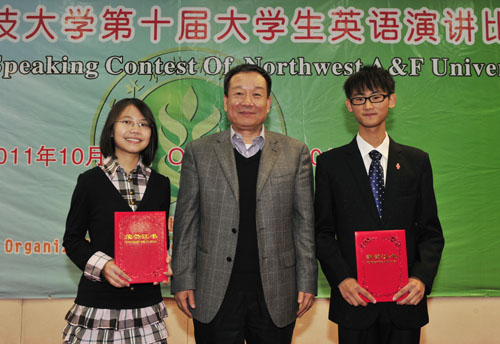 常务副校长赵忠在比赛结束时致辞并为获奖同学颁奖。赵忠指出,我校的奋斗目标是创建产研紧密结合的世界一流农业大学,这就需要一大批具有国际竞争力的学子、学者。赵忠说,通过观看今晚的比赛,看到经过学校、学院的重视努力,学生英语水平有了极大提高很高兴,他感谢同学们付出的努力,盼望明年有更多的同学走上比赛讲台施展才华。